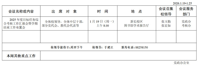 第 二 十 周 工 作 安 排